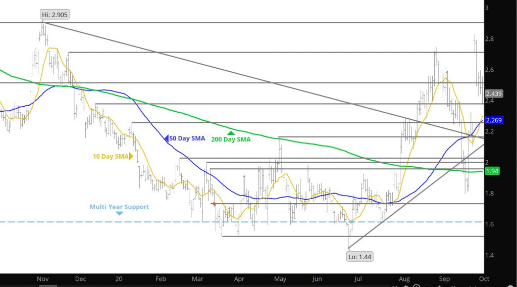 In the early trade, natural gas wants to trade higher which will be interesting as it hits resistance zones, but perhaps it will trade up into the $2.50’s which will provide low risk opportunities for length. In the mean time, history does not support a break out above recent highs nor significant declines below the range from the expiration of Oct.