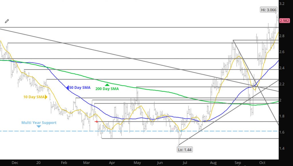 Major Support: $2.983, $2.476-$2.446, $2.392,$2.258-$2.253, $2.219 Minor Support:$2.79, $2.638, $2.508, $2.339 Major Resistance: $3.047-$3.053, $3.101, $3.207