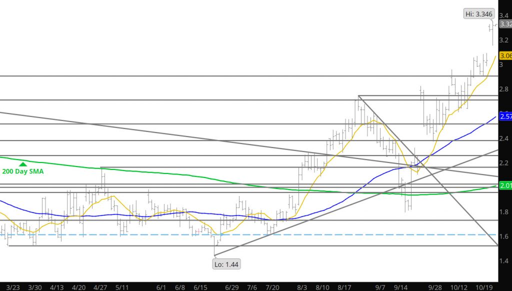 Major Support: $3.19, $3.101-$3.091, $3.047, $2.907, $2.822 Minor Support:$3.151, $2.98, $2.84 Major Resistance: $3.318, $3.361-$3.370, $3.423, $3.516