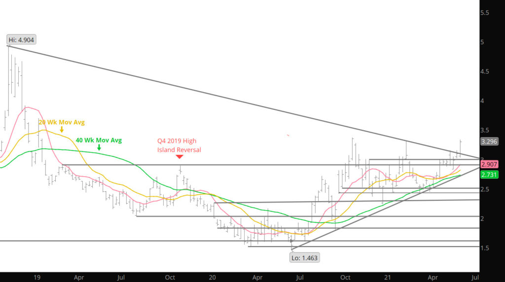 Wow — that’s Natural Gas. The breakout last Friday brought back memories of when Natural was a brutally volatile commodity. Eliminating serious resistance zones ($3.198, $3.25,and $3.329) without blinking and testing the yearly highs with a range of $.181. However, perhaps the market got a little too exuberant when it tried to take out the Jan high of $3.329 (it traded just $.001 above) or the late Oct/Nov high of $3.396, before retracing the gains but still closing the week at the highest weekly close since that late Oct rally.