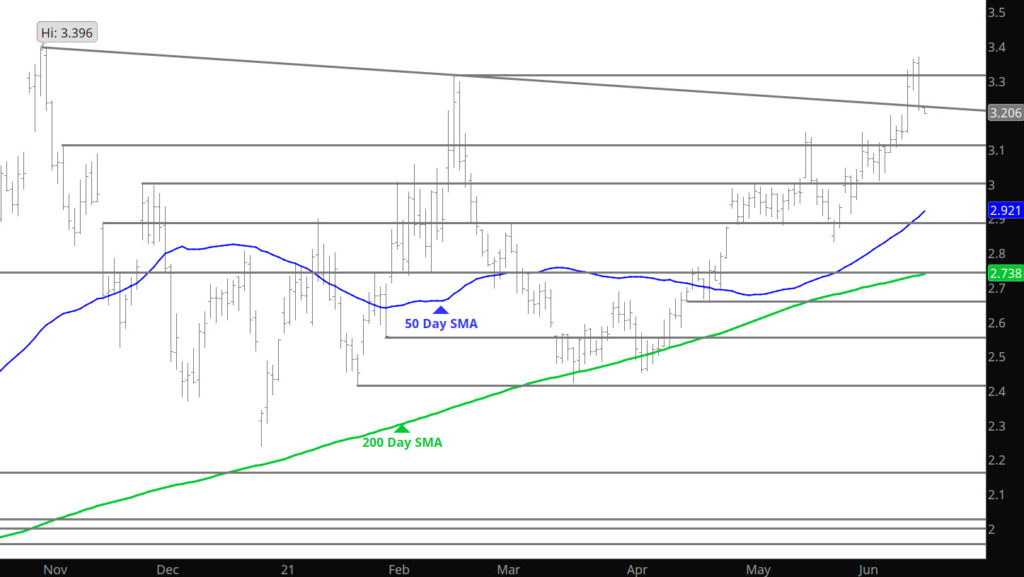 Major Support: $3.198, $3.12, $3.00 $2.914-$2.886, $2.78, $2.71-$2.70 Minor Support: $2.694 Major Resistance: $3.321-$3.33, $3.396, $3.482