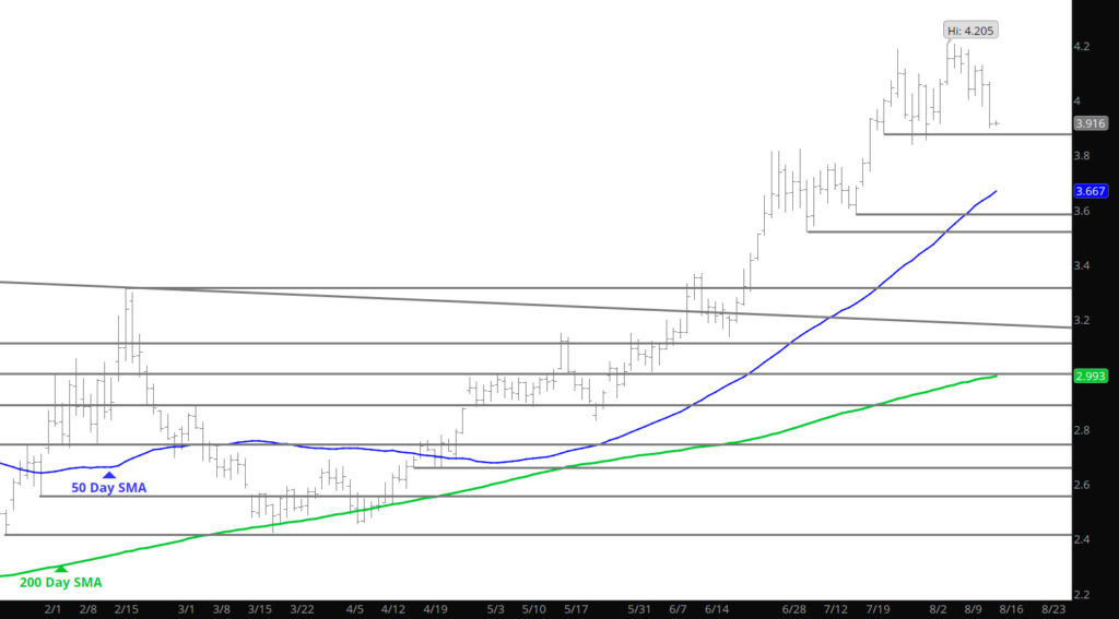 Major Support: $3.87, $3.722, $3.58, $3.538-$3.511, $3.385, $3.368-$3.316, $3.198, Minor Support: $3.821, $3.508-$3.485 Major Resistance:$4.187, $4.205, $4.238