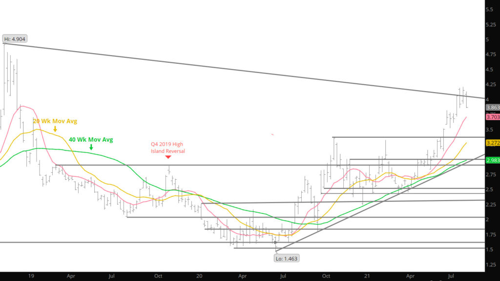 After last week’s highest weekly close since December ’18, Sept made one more low volume push higher but failed well below the last two weekly highs at 2.187 & 2.205. The reversal from a just slightly lower high (2.185) traded with the highest volume since the end of calendar June and continued to increase as the prompt fell. Average daily volume for the week ending 08/13 increased an estimated 95,000 contracts and added up to the highest total in six weeks. This may have been the beginning of the seasonal correction talked about here for weeks.