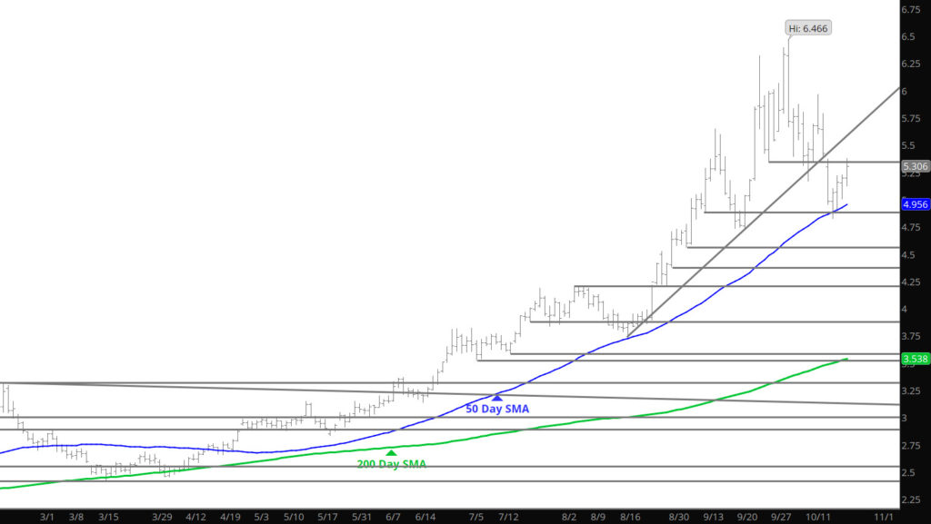 Major Support:$5.275, $5.17, $4.88-$4.825, $4.61, $4.537,$4.375, $4.211, $4.156, $3.92 Minor Support: $4.728-$4.70, $4.66 Major Resistance:$5.40, $5.489, $5.655, $5.822