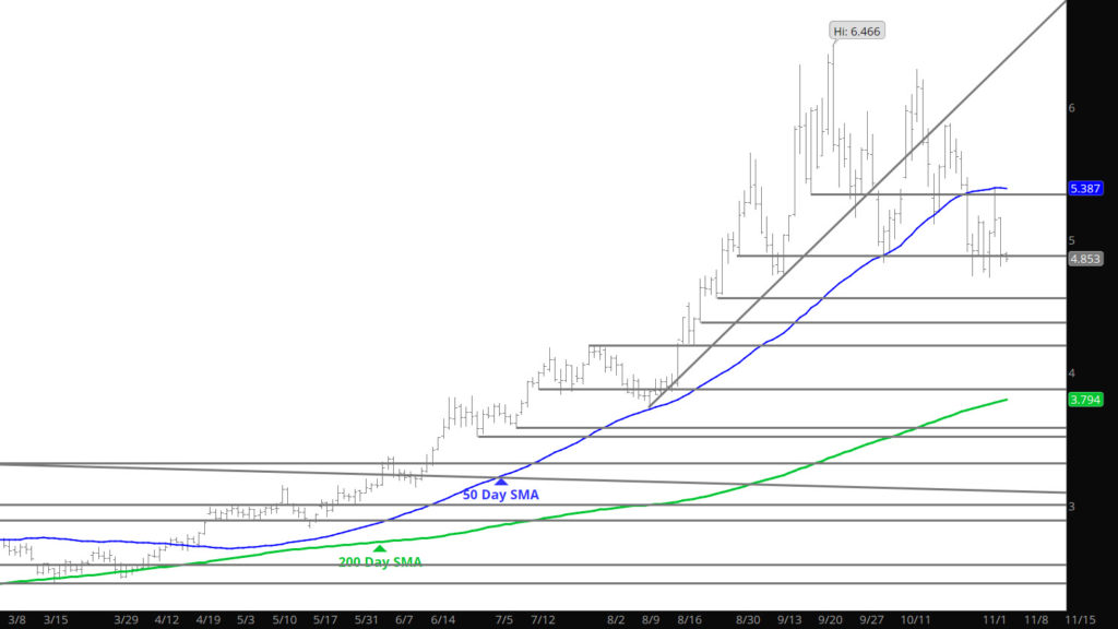 Major Support: $4.88-$4.825, $4.728-$4.70, $4.61, $4.537,$4.375, Minor Support: $4.66 Major Resistance: $5.148-$5.175, $5.339-$5.40, $5.64, $5.964, $5.996,$6.177, $6.24-$6.493
