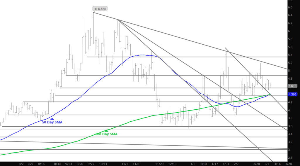 Major Support:$4.40-$4.26, $4.187, $3.972, $3.734, $3.63, $3.584-$3.522 Minor Support: $4.60-$4.557 Major Resistance: $4.82-$4.88, $5.08