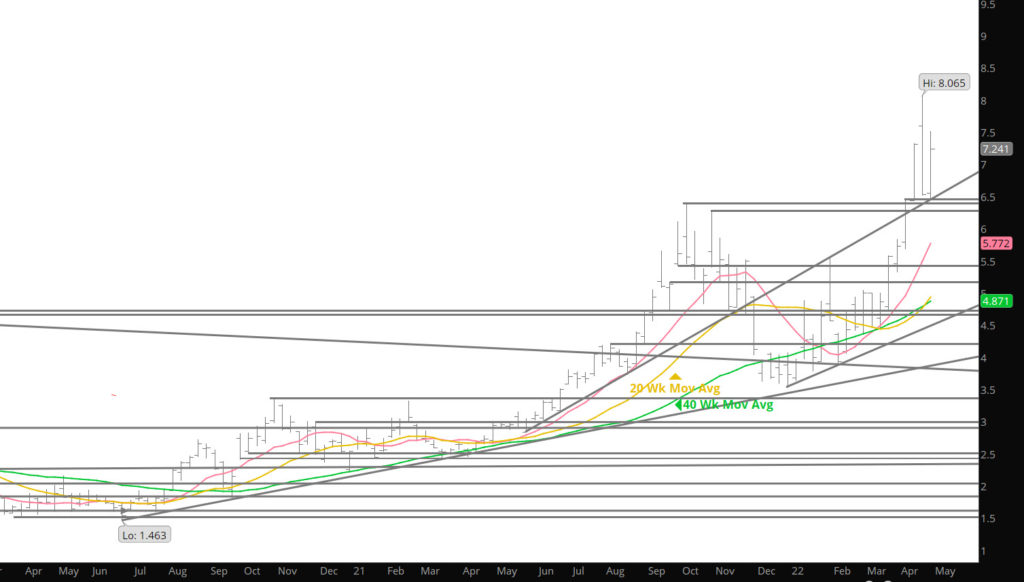 As expected, prices rallied into the expiration process, setting the week’s high only to give a chunk of the gains up as June took over as prompt. Was interesting for this observer to watch the Friday trade on a 5 minute chart as prices leaped up from $7.05 to $7.30 in a matter of 10 minutes . That action smells to this trader as the machines and the algorithms rocking the market (the same type of event happened last month during the $1.60 correction off of the highs). This type of activity can create serious risk issues for those of us the don’t have the machine based algorithms nor the quickness to respond to bid/offer spreads with volume. Not complaining, just wanting to make you better at understanding the potential risks in your trading.