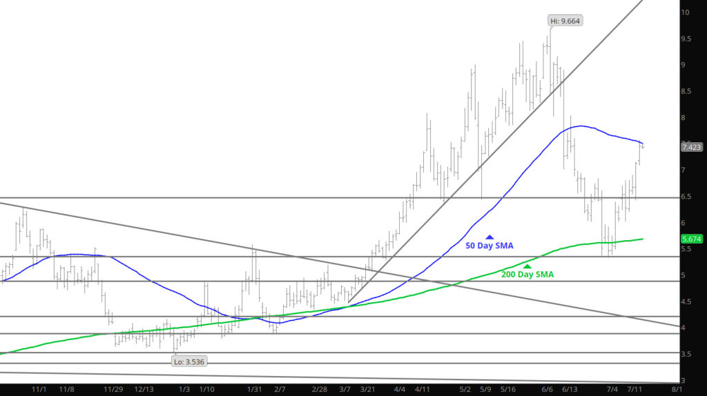 Major Support:$7.14, $6.88, $6.754,$6.38, $6.02, $5.623, Minor Support: $6.42, $5.548, $5.40-$5.45 Major Resistance: $7.41, $7.485, $7.55