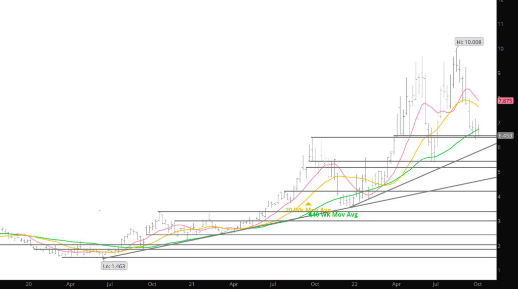 Since the August high prompt gas has fallen $3.723 (37%) as a reversion to the mean has again brought it from substantially above the 40 – week (55%) to this week’s close below it (Nov contract) for the first time since the first Friday of 2022.