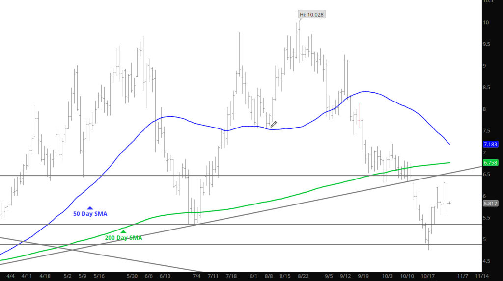 Major Support: $5.61-$5.44, $4.716, $4.705-$4.68 Minor Support: $5.47 Major Resistance: $6.314, $6.456, $6.74, $7.18, $7.532, $7.71-7.75, 8.021,