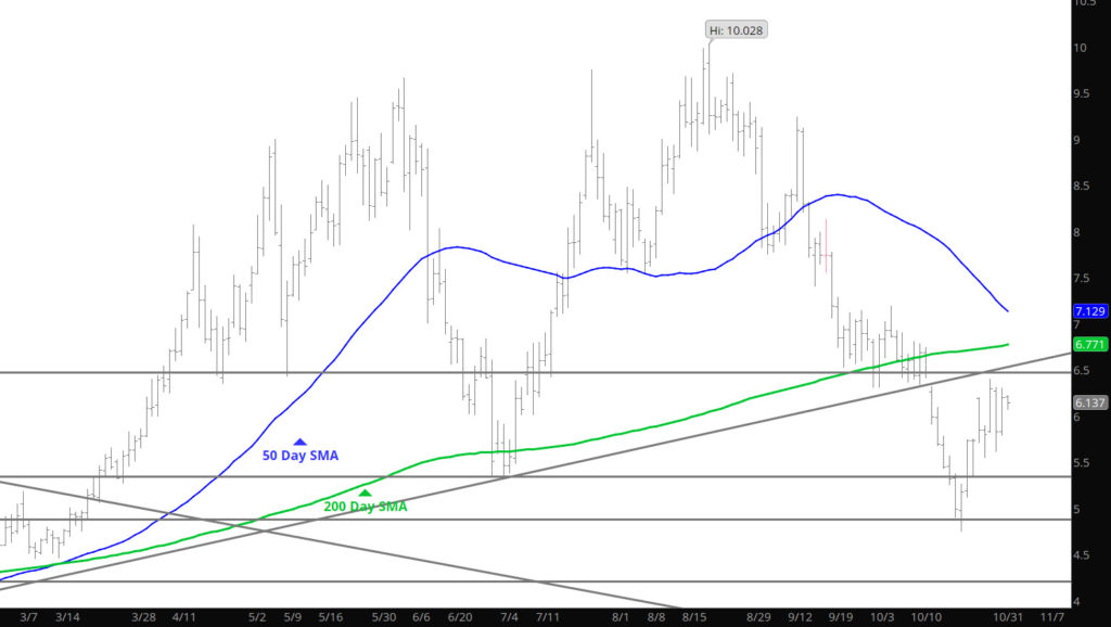 Major Support: $5.61-$5.44, $4.716, $4.705-$4.68 Minor Support: $5.47 Major Resistance: $6.314, $6.456, $6.74, $7.18, $7.532, $7.71-7.75, 8.021,
