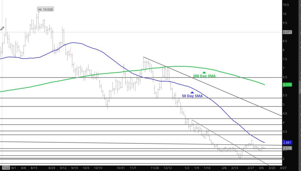 Major Support: $2.00, $1.795-$1.766 Minor Support: $2.41- $2.34 Major Resistance$2.836, $3.00, $3.536, 3.595