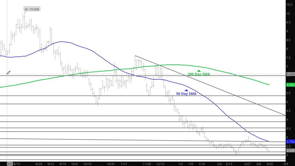 Major Support: $2.00, $1.795-$1.766 Minor Support: Major Resistance$2.836, $3.00, $3.536, 3.595