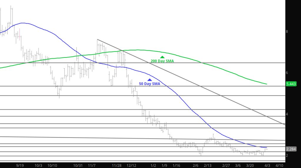 Major Support:$2.12, $2.00, $1.991-$1.96, $1.795-$1.766 Minor Support: Major Resistance $2.36, $2.836, $3.00, $3.536, 3.595