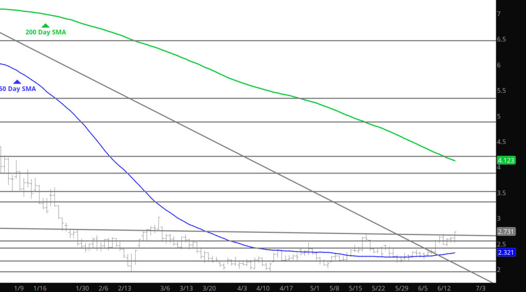 Major Support: $2.00, $1.991-$1.96, $1.795-$1.766 Minor Support:$2.47, $2.38-$2.26, $2.17 Major Resistance $2.707, $2.816-$2.836, $3.00, $3.536, 3.59