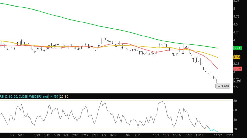 Even though the technical indicator is under 20 — does not mean that it can’t go lower but how long it stays there is another question. When markets are extended to extreme levels — they are subject reversals that punish the late momentum players.