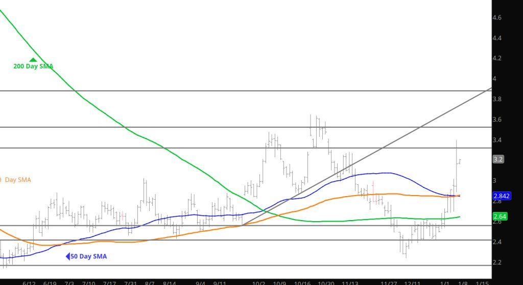 Major Support:, $2.00, $1.991-$1.96, $1.795-$1.766 Minor Support $3.00, $2.87, $2.62, $2.47, $2.38-$2.26, $2.17 Major Resistance: $3.16, $3.48, $3.536, 3.59, $3.65