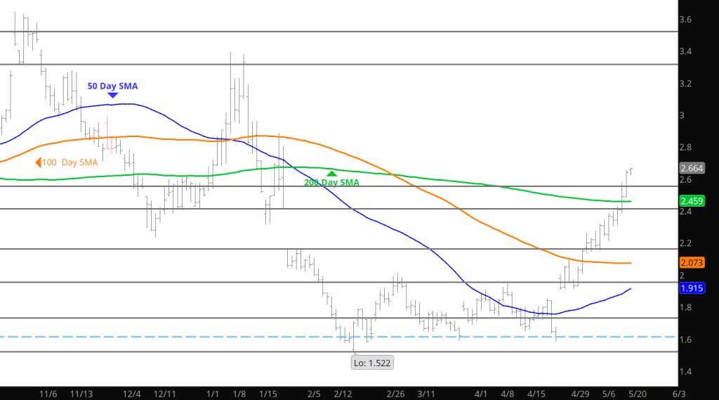 Not sure if you caught the theme of the Daily’s last week, but the market seems to be signalling a change in bias. Go into some of the supporting details in the Weekly section, but suffice to say, gas may be heading into a bullish period at a historically bullish season of the year. This does not mean straight up as some of the short covering has already occurred (see Weekly) and the Memorial holiday usually provide some weakness, should you be interested in participating.