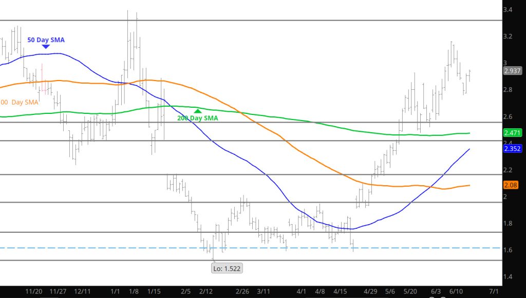 On the other side of the expectation potential will be a bearish report sending price back to the low of the July trading range (down to $2.70-$2.50).