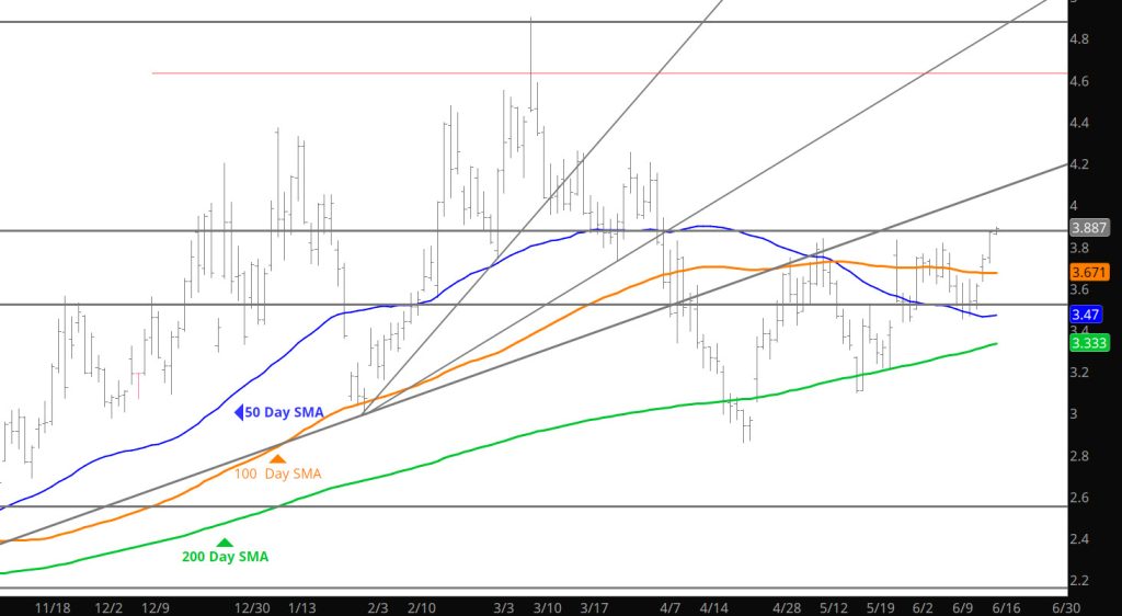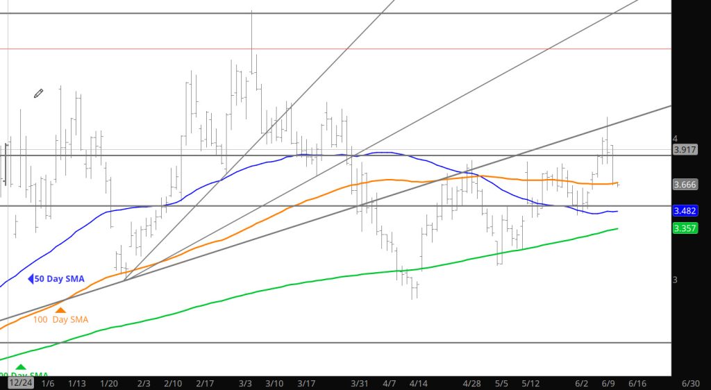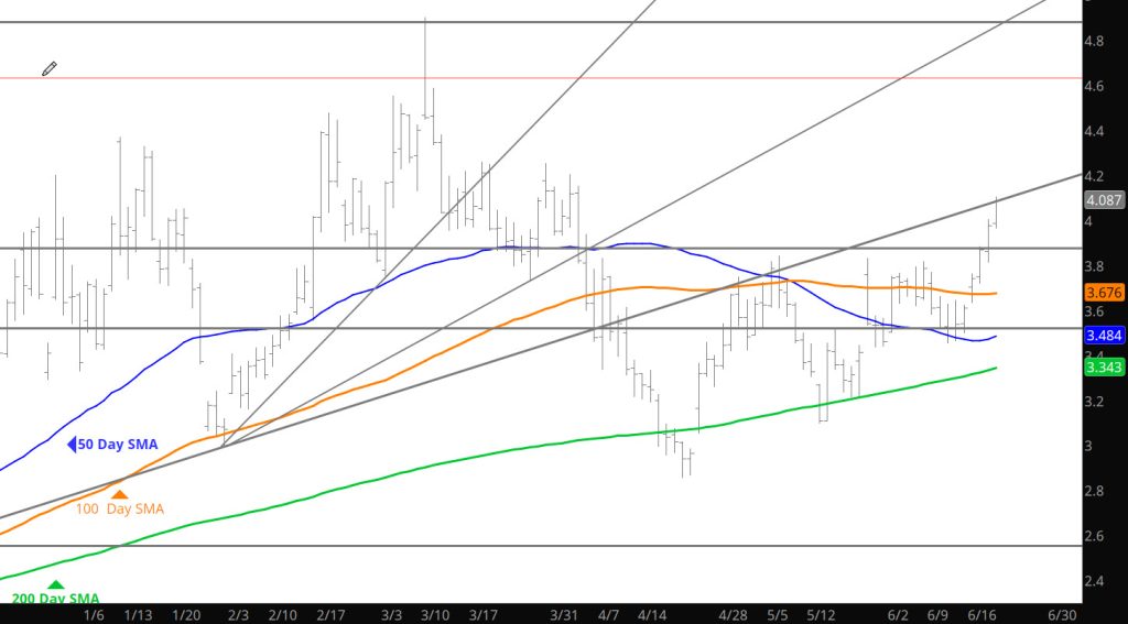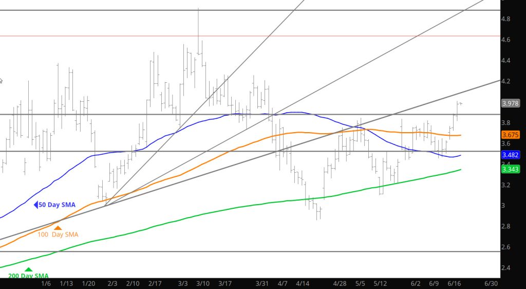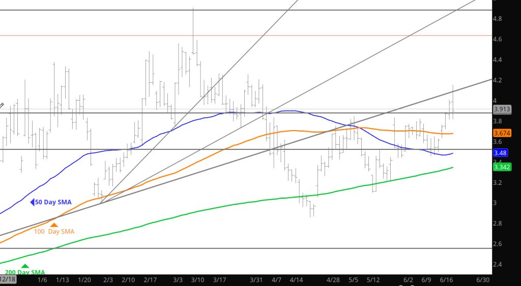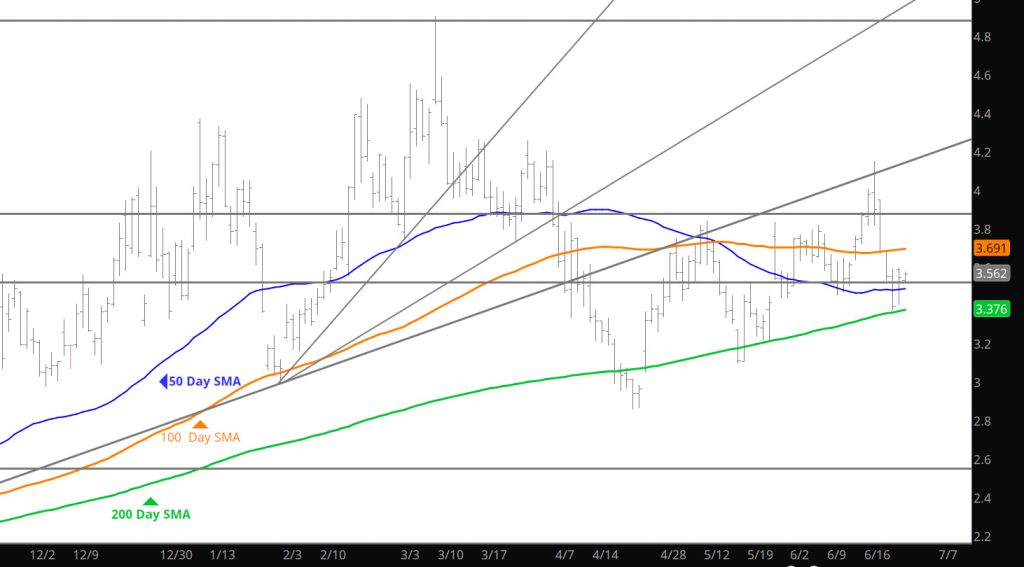 The strong close to last week may be suggesting early strength today but the Sunday night market is showing weakness. Discuss the seasonal patterns and historical averages (declines) around the Independence Day in the Weekly section — give it a read. Will be in and out of access this holiday week– but I should be scheduling the Daily tomorrow and Wednesday. Should the declines initiated on Sunday hold — the market will likely be establishing the initial low end of the range for August contract.