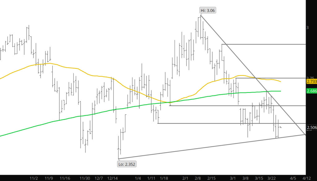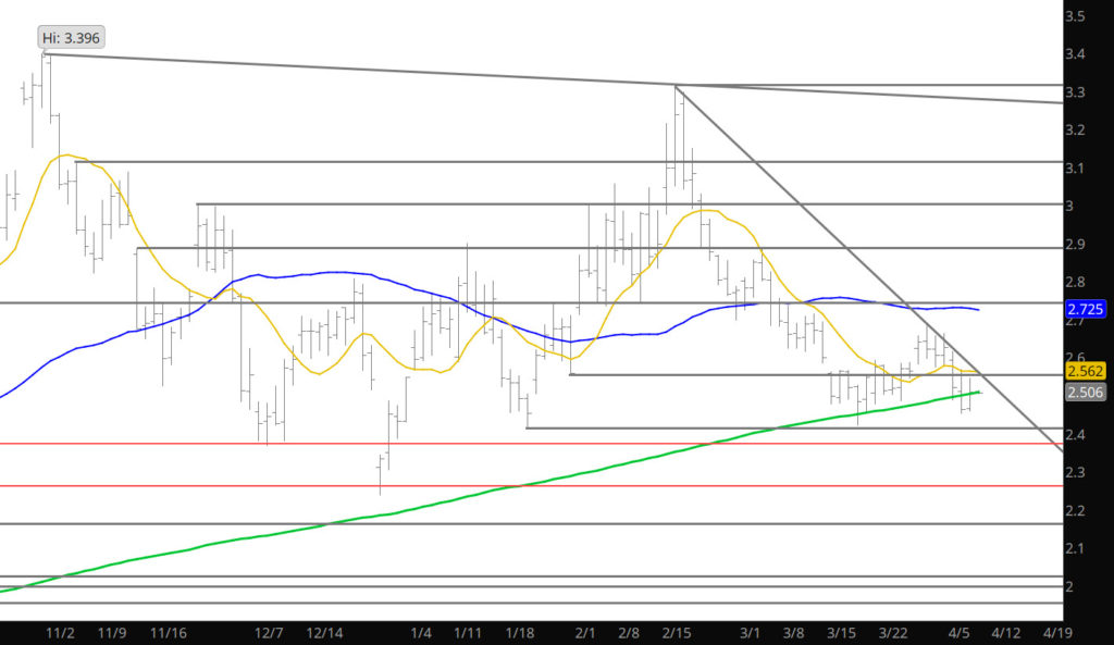 Finally got a probe at the close to break below the March lows. While bearish from a technical standpoint, if this decline is made of the power to rock lower it will need some daily declines testing and breaking further support zones continuing lower. Other than shorting — may think about buying the dip with stops tight.