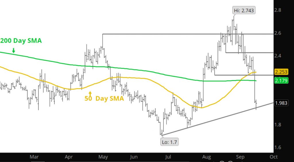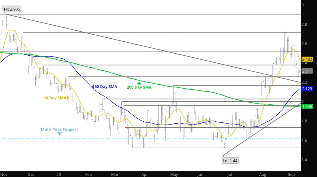For the first time in a while the differed contracts lost significantly to the prompt and brought some reality to the recent price action. Perhaps this is the first step in the correction bringing prompt closer to the second month, yesterday brought the Nov contract back after trading to an $.85 premium. Unfortunately, if you look at the Dec / Nov spread– it too is at an extreme wide margin. Mentioned yesterday, the prompt Oct contract is a “no touch” depending on your risk profile— perhaps the Nov contract brings opportunity (short term) from the bear side.