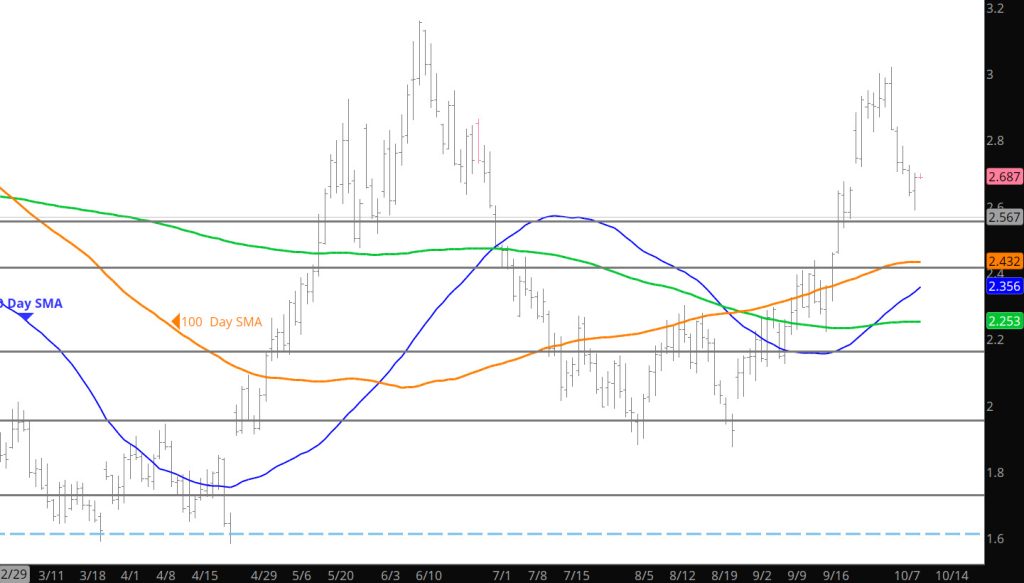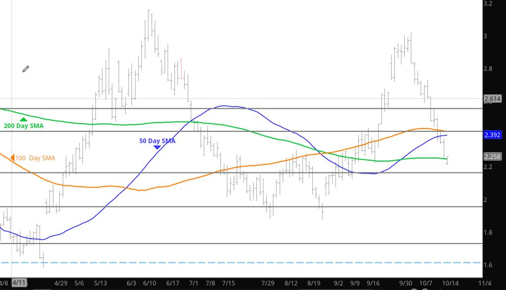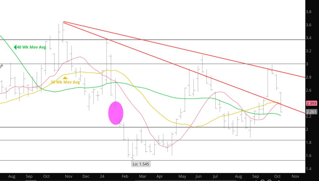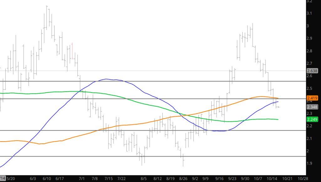 Just as the market consolidated the gains around $2.90 for a few says — the market is likely to consolidate the losses not between $2.40 and $2.55. All part of a range trade discussed in the Weekly.