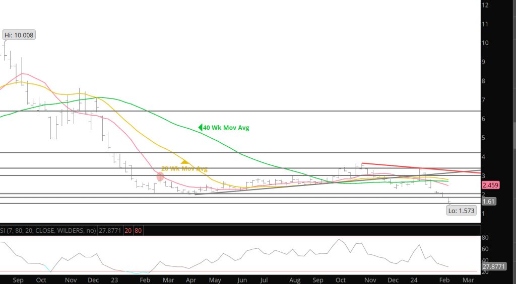 Four years in June ’20 there was a suggestion to extend commitments as long as someone could be found to take the other side. That turned out ok. The key to technical analysis is to remain consistent…and to learn from history. Since the thoughts that the ’23 lows may and last week’s decline eliminated those thoughts, I am not willing to accept that we are yet approaching an analogous point. The trigger in June of ’20 was a reversal from a lower low which created multiple momentum divergences from a severely oversold condition (that’s the most common way for the market to communicate that it has traded to an unsustainable low). March gas is short – term oversold and the speculative short position is close to out of hand…total open interest is about the same as it was at the same time in ’20, before the bottom in June that total fell about 300,000, so don’t be surprised if there is short covering rally…which fails at a lower high, but the market is not that close to long – term oversold. For now, the target for prompt gas seems to indicate $1.50- $1.60.