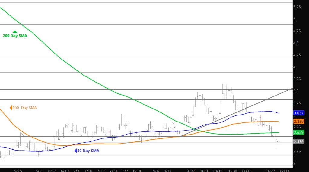 Go into the reason for the $2.45-$2.47 being a critical area for the near term bias of prices in the Weekly section. I do find it interesting that this is the area the late Sunday night traded to.— Shocking. Spend the time to read the Weekly (less than 3 minutes). Other than that — lets see if we get a near term bias shift.
