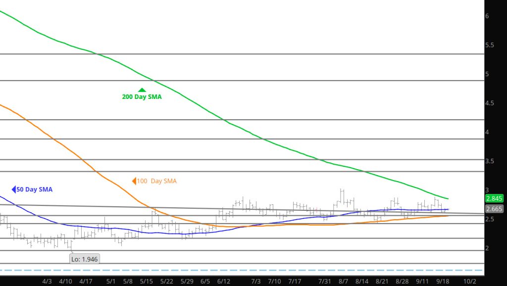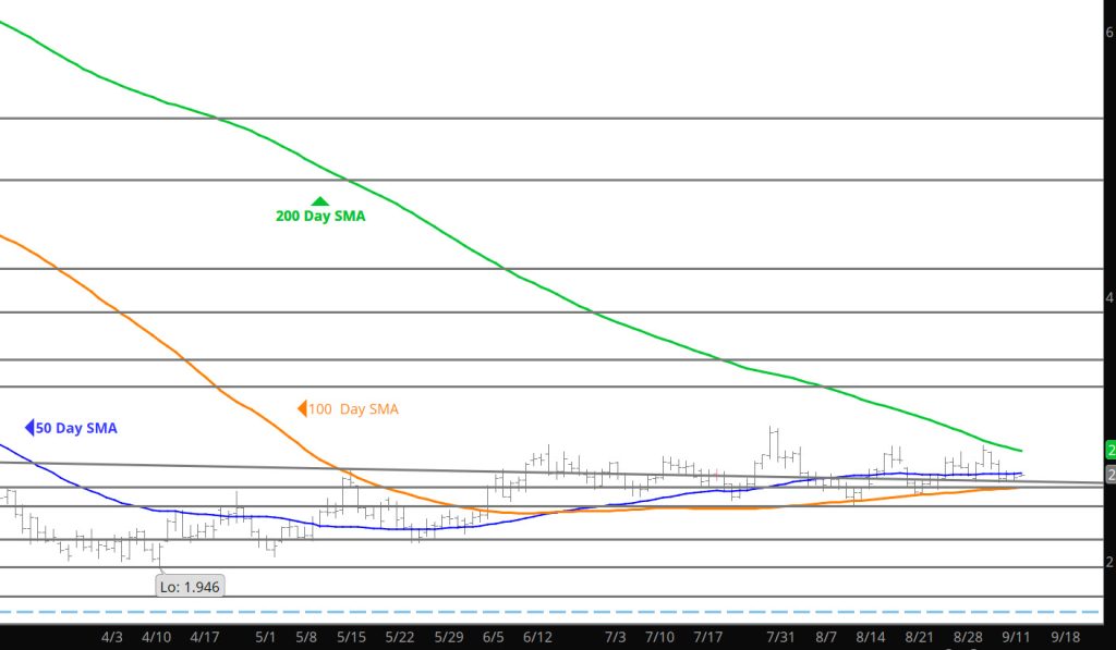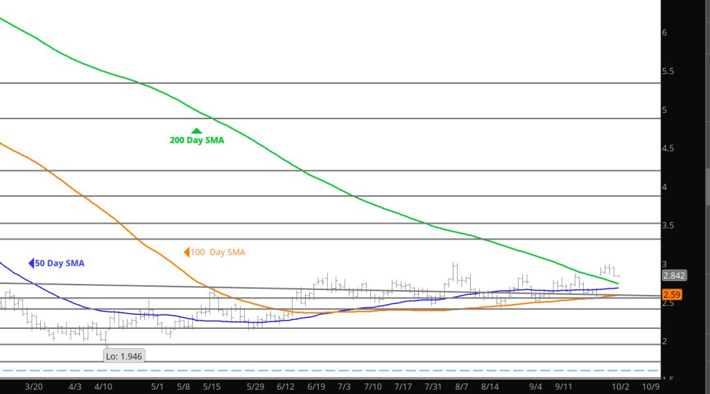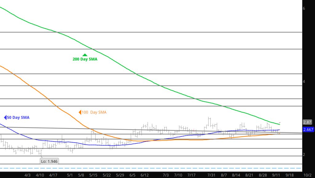 My apologies for missing publishing yesterday — did not set up the server properly– but you missed nothing as my diatribe just spoke about the failure of the move on Wednesday by closing under the key resistance area (after stopping me out on the run). Said the same thing going into the storage report that the selling around $3.00 had a close and low risk opportunity and yesterday proved that it was low risk. The one element that the market provided was the potential confirmation of a bias change with a high volume (daily) directional bias change. It is now imperative for the market to finally confirm this be holding most of the gains through the weekly close.