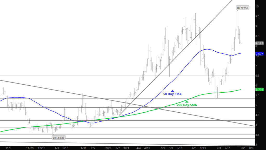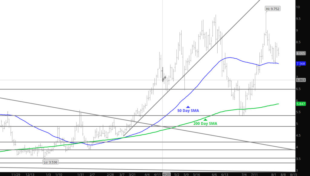 Major Support: $8.02, $7.55, $7.14, $6.88, $6.754,$6.38, $6.02, $5.623,