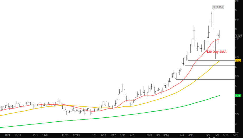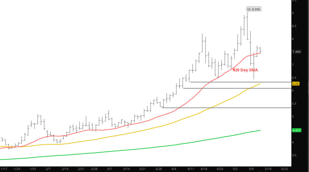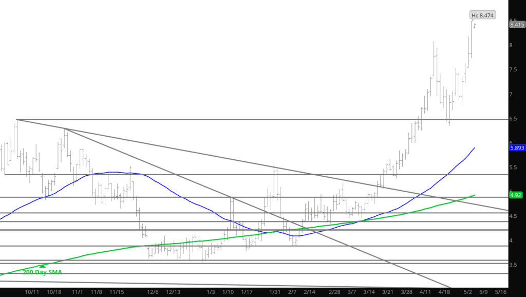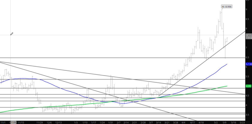 When prices extend nearly three standard deviations above the 20 WK SMA– it is over cooked. Last time (last month) prices corrected nearly 20% before finding support. Not calling this the high, as prices can continue well beyond technical points — but trust me — there will be a correction. If you are playing this with length — rock and roll, I have retired from playing this market (even on a daily play) until some of the silliness recedes. BTW — I thought that was a bearish storage report — that is why I don’t trade on fundamental data points.
