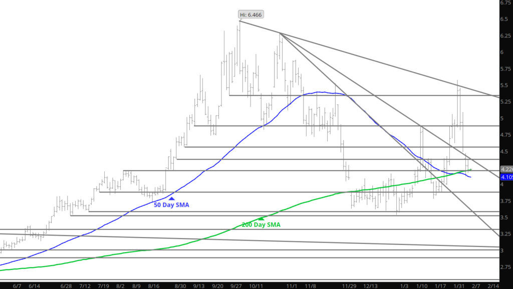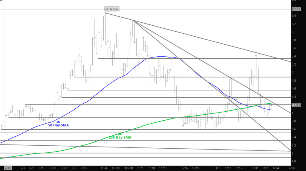 Major Support: $4.20-$4.186, $4.057-$3.972, $3.734, $3.63, $3.584-$3.522