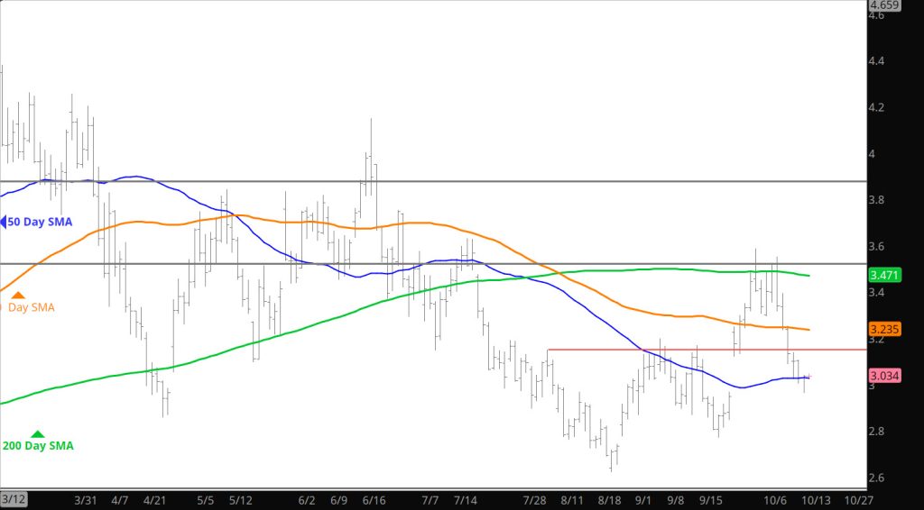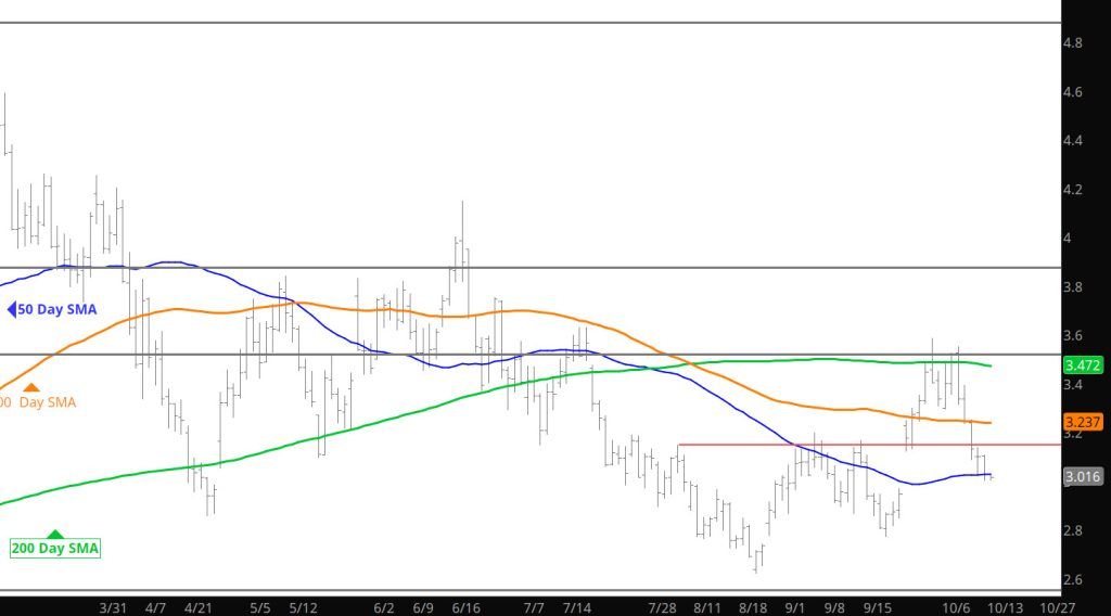 Major Support: $3.167, $3.06, $3.00-$2.97, $2.843, $2.727, $2.648
