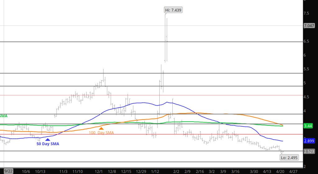 Mentioned in a Daily and Weekly when the Iran conflict started that the rally in Natural was linked to Crude and that when Crude corrected – Gas was headed to test mid term support. We got a taste of that last night when Crude fell over $18.00 off the days highs and gas last night corrected back into the short term support zone (down over 4%). Patience here as the market needs to see if the “deal” is actually adhered to or not especially over the next week.