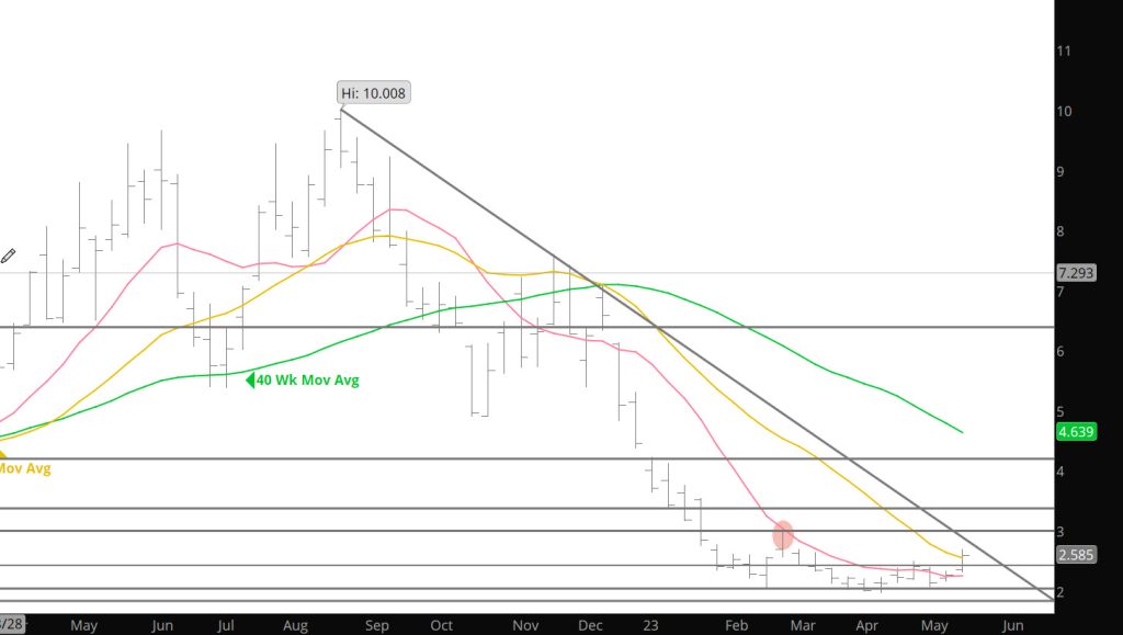 Not suggesting that prices are headed back to $10 in the near term, but the down trend that has held the market since last fall seems to be slowly correcting its bias.