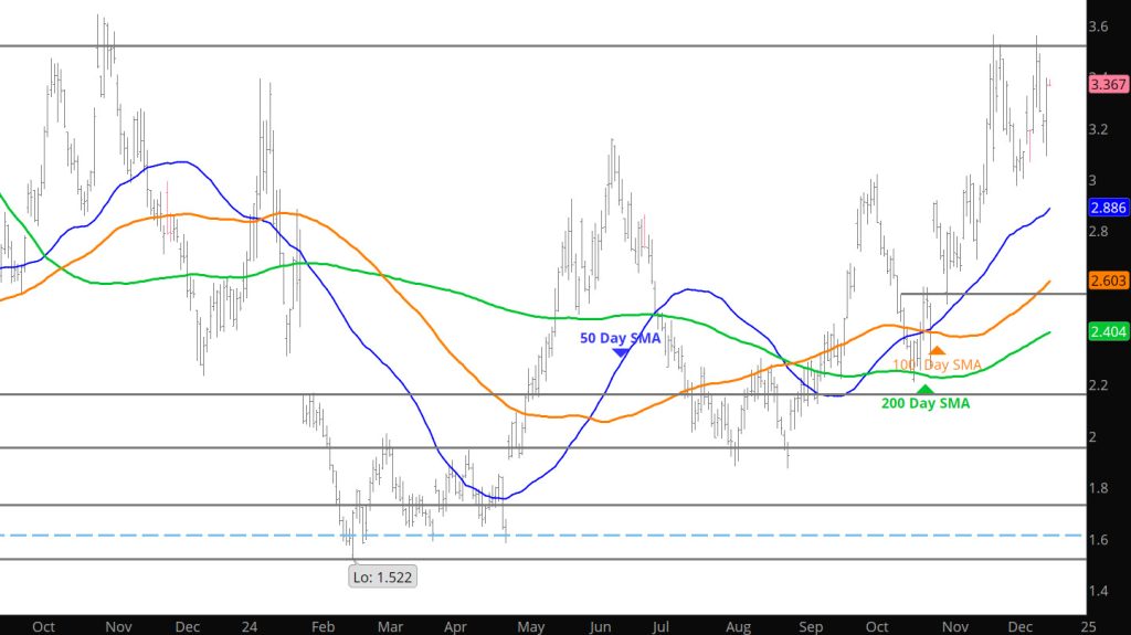 Major Resistance: $3.16, $3.307 $3.392, $3.487